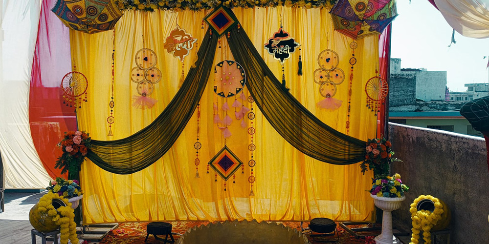 Our team designs stunning Haldi decorations with yellow themes, floral arrangements, drapes, and creative setups to make the ceremony lively and memorable.